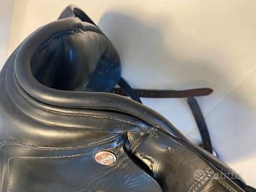 Vendo una sella equitazione classica dressage Niedersuss austriaca, pelle nera misura 17. Usata tanto, ma tenuta bene. Se interessati, cedo anche gli staffili e staffe, e altri accessori per il cavallo.