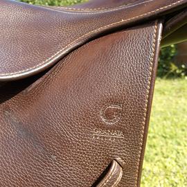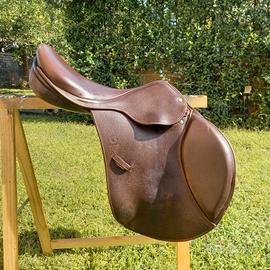 Sella equitazione salto ostacoli Granata, misura 17.5, buone condizioni con sottopancia pettorale e staffili.