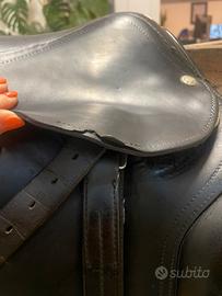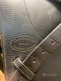 Vendo sella inglese marca Devoucoux modello Biarritz, misura 17 . La sella presenta qualche segno di usura dovuto al normale utilizzo, ma è ancora in ottime condizioni generali: comoda, ben bilanciata e pronta all’uso.