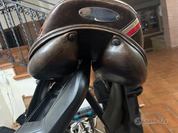 Sella inglese Erre plus marrone ben tenuta. Incluso anche coprisella e staffili