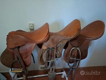 Vendo 2 Selle inglesi per equitazione in cuoio conciato al vegetale con un solo coprisella in lana.
