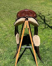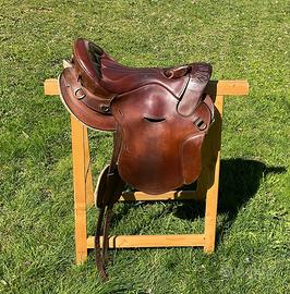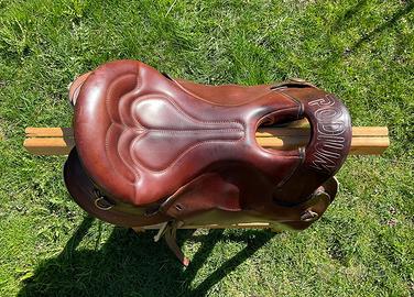 sella da cavallo marca PODIUM modello da trekking, realizzata interamente in cuoio 100% italiano, cuscini in pura lana, quartieri lunghi e banane ergonomiche per maggior comfort durante le passeggiate di trekking e/o endurance, - misura 17". Vendo causa cambio cavallo. Staffili compresi ma senza staffe e sottopancia