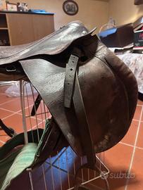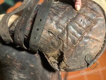 Sella per equitazione antica primi 900 usurata con briglie e accessori