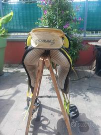 Vendo sella Podium per Endurance. Misura 16". Anno 2002, usata ma tenuta molto bene. Comoda, leggera, ideale per cavalli da Endurance. Colore giallo, completa di staffe, staffili, sottopancia e borsone, tutto originale.