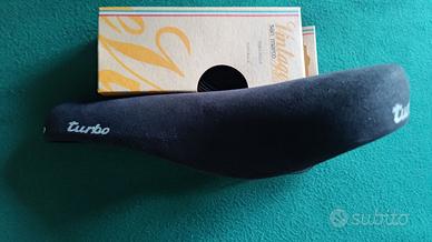 Sella vintage Selle Italia Turbo in pelle nera, rails in alluminio. Nuova mai motata.