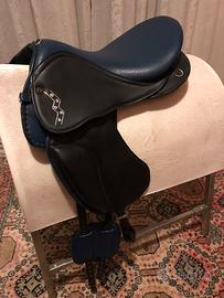 Sella Don Rodrigo adatta per turismo equestre / endurance Tg seggio 17” arcione stubben Pelle pieno fiore con fender inestensibili in biothane
