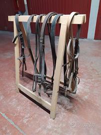 Coppia di selle equitazione monta inglese, selle costruite artigianalmente con vero cuoio Napoleon, complete di sottopancia in cuoio e finimenti con staffe e redini - testiere e finimenti vari - 2 cap dei quali uno per adulti e l'altro per ragazzi - inoltre anche cassetta degli attrezzi completa degli arnesi - cavalletto porta selle - cedo per inutilizzo poichè cessata attività - Possibilità di acquisto singolo - per ogni eventuale chiarimento scrivere o telefonare al n. 3334132948 a Alberto - P.S. qualora l'acquirente fosse nella zona fra Modena e Bologna posso fare io la consegna GRATUITA -