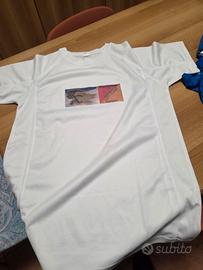 Set 10 maglie running in tessuto tecnico con stampe pubblicitarie gare e squadra vari marchi taglie s/m