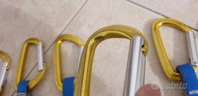 Come da titolo vendo set di 10 rinvii Camp Orbit come da foto. Dettaglio dell'usura dei peggiori moschettoni lato spit.
