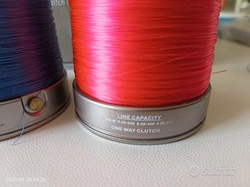 bobine per possessori di questo mulinello usato per carpfishing e surf casting.praticamente nuove .monofilo Trabucco Tforce 0.25 rosso e blu caricato su bobine in foto