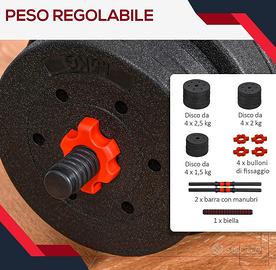 Set 2 Manubri Convertibili in Bilanciere, 25kg Totali con 12 Dischi Pesi Acciaio e Plastica Allenamento a Casa.