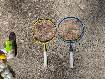 Il set comprende: - 2 racchette da tennis - 10 palline bianche rigide - 9 palline da tennis - 4 volano