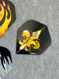 Set composto da 3 alette per freccette nuove, mai utilizzate, ideali come ricambio o per personalizzare il tuo set di darts. Design moderno con fiamme e giglio araldico con finitura metallizzata, adatte sia a giocatori amatoriali che appassionati.