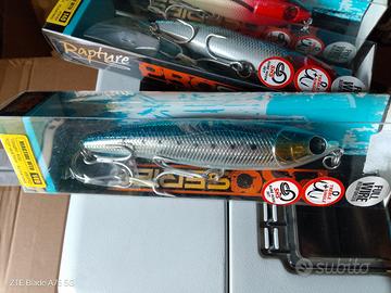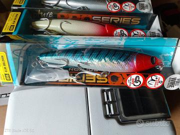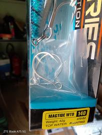 La forma imita perfettamente un pesce foraggio che scappa appena sotto il pelo dell’acqua e l’azione è quella tipica dei WTD che consente jerkate perfette intervallate da momenti di pausa anche a chi è alle prime armi, caratterizzando il nuoto per scatti sinuosi e regolari in grado di riflettere ogni minima luce o bagliore superficiale, rendendo l’artificiale ben visibile agli occhi dei predatori e stimolare l’attacco. Sul recupero vivace lineare, Magtide è anche in grado di immergersi e ispezionare gli strati immediatamente sottostanti la superficie. Inoltre, Magtide garantisce prestazioni eccellenti sia in fase di volo che di nuoto, questo grazie ad un attento studio dei flussi aerodinamici e idrodinamici realizzati sul corpo, abbinati a un’attenta disposizione dei pesi interni. Magtide presenta anche importanti soluzioni tecniche, applica il concetto SHS, è “armata” con costruzione in acciaio “full wire” in grado di resistere a sollecitazioni estreme ed è fornito sia con ancorette che ami singoli. La precisione nei dettagli e le colorazioni curate nei minimi particolari, ne fanno un’esca che sicuramente vi regalerà grandi soddisfazioni. nuovi nella loro confezione originale.