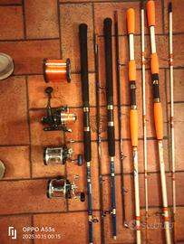 4 canne pesca traina mare 4 e 5 libre più 2 mulinelli rotanti più 1 fisso più bobina filo mai usati praticamente nuovi vendo a 200 euro 347 5945123 Dario