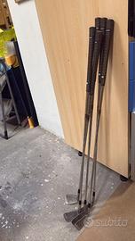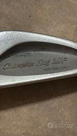 Vendo set composto da 5 mazzi da golf originali Mizuno, modello Champion Flag MF Mid Balance, anni '90/2000, con impugnatura Mizuno e shaft in acciaio (Flex M-R, medio-regular). Mazze solide, ideali per principianti o amatori, produzione giapponese. Condizioni generali buone, facce e grip integri (vedi foto).
