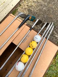 Set 7 mazze da golf vintage PETRON e 5 palline