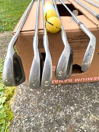 Set 6 mazze da golf vintage PETRON CON 5 palline