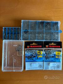 Set di ami, esche, borsa da pesca e borsa porta ami. Tutto nuovo confezionato, mai utilizzato.