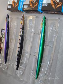 3 Artificiali da spinning di alta qualità, ideali per sondare tutte le profondità e condizini marine. Lunghezza 17,5 cm con tre diverse grammature: 39g colore verde blu 50g colore barracuda testa oro 70g colore viola argento uv Perfetti per: Spigola Serra Barracuda leccia e predatori costieri Ottima aerodinamica per lanci lunghi e precisi anche con vento e mare mosso. Nuovi, mai utilizzati. Ideali per pesca da riva, scogliera o porto. Movimento in acqua molto realistico, estremamente catturante. 🔥 Disponibili più pezzi e diverse colorazioni 🔥 Sconto per acquisti multipli ✅️ Spedizione rapida ✅️ Disponibile per scambio a mano Contattami per info o altre disponibilità. pesca mare, artificiali, spinning, esche, predatori, spigola, serra, barracuda, casting, attrezzatura pesca, lure fishing, pesca sportiva