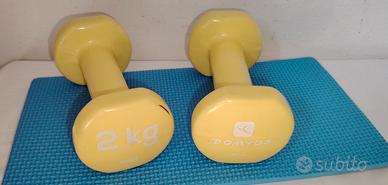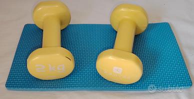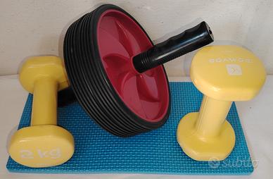 Set attrezzi ginnici, usati ma tutti in ottime condizioni, solo un manubrio ha un piccolo taglietto sulla plastica, come da foto, ma niente di grave. 2 manubri 2,kg ciascuno Piccolo tappetino gomma per questi ultimi Ruota addominali/spalle Peso complessivo degli articoli 4,600kg Tutto in blocco 10 euro Contattatemi se interessati per info e chiarimenti