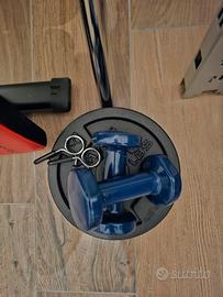 Vendo per inutilizzo Panca Domyos, 2 pesi da 2kg, Bilanciere da 10kg con 2 dischi in ghisa da 5kg l'uno e pinze per blocco dischi. Vendo tutto il set Ritiro a mano per ovvi motivi