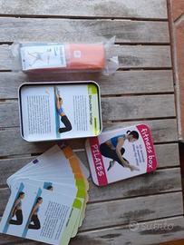 set composto da una fascia elastica (resistenza forte) e un box metallico con 50 esercizi di pilates a diversa intensità.