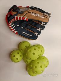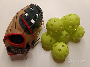 Per taglia sbagliata e inutilizzo vendo guantone baseball sinistro mod. BA100 da 10.5 Inches della Kipsta e set di 8 palline morbide indistruttibili.