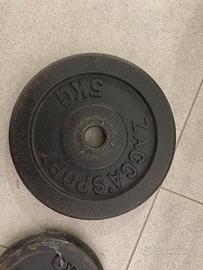 Comprende un bilanciere con 4 pesi da 5 kg, 2pesi da 2 kg, 2 pesi da 1 kg