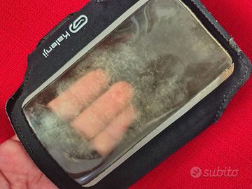 - due portacellulari KALENJI, comodi per avere sempre a portata di mano il cellulare durante running e jogging oppure anche durante escursioni e trekking, la fascia con il velcro permette di legare il portacellulare al braccio, all'avambraccio o anche agli spallacci dello zaino, la copertura di plastica assicura il corretto funzionamento dello schermo touch del vostro cellulare; attenzione: uno dei due portacellulari ha la plastica leggermente ingiallita, ma comunque non ne pregiudica il funzionamento