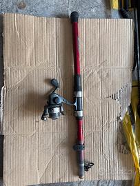 Set di due canne da pesca: LURE telesco 240 con mulinello Fish first pocket 500 Ottime condizioni, quella rossa è praticamente nuova, tenute in garage