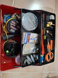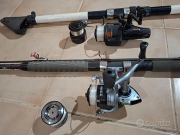 Vendo set di canne da pesca Daiwa-Marine e Trabucco-Monster, mulinelli, retino, più casseta con ami, piombo, lenza di varie misure, gallenggianti ecc... la canna trabucco è stata utilizzata una sola volta, la Daiwa-marine presenta qualche segno di usura ma tutto perfettamente funzionante, ogni mulinello è provvisto di rocchetto di riserva già guarnito di lenza.