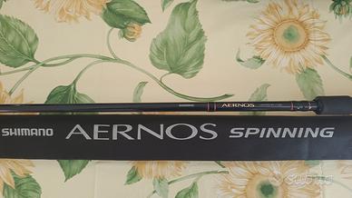 SHIMANO AERNOS SPINNING EVA SARNS27728: canna da pesca caratterizzata da fusto in carbonio XT60 con azione extra rapida, manico splittato, anelli FUJI alconite O-type e impugnatura EVA split grip per uso freshwater e per la pesca a spinning saltwater.