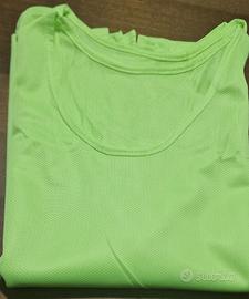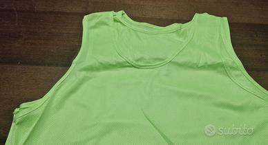 Set di 4 canotte XXL colore verde fluorescente, tessuto sintetico retinato traspirante, per allenamento calcio, calcetto, fitness. Le misure sono evidenziate in foto.