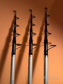 Vendo set di 3 canne telescopiche shimano ultrega TE 430-170 e TE 430-150 per uso surfcasting...canne usate poco 10 volte più o meno poi sempre tenute in camera chiuse nel borsone portacanne.