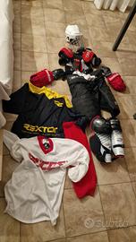 set completo casco, pattini numero 44, ginocchiere, gomitiere, pantaloni con bretelle, calze, corpetto, 2 maglie, e guanti praticamente nuovi a 150,00 €