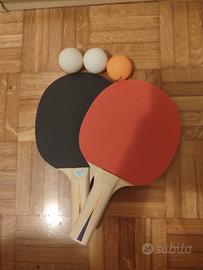 Set di ping pong con rete da fissare, racchette e palline. Condizioni praticamente intatte.