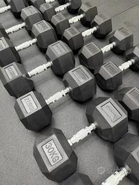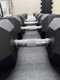 Vendo set completo di manubri Diamond Hex gommati, pesi da 7,5kg a 30kg con incremento di 2,5kg.