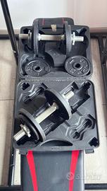 Set completo per palestra domestica: panca + barra per trazioni + manubri
