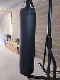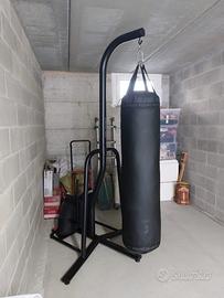 Set completo per sacco da box 60kg, comprende: sacco da box 60kg per calci e pugni, struttura per sostenere il sacco, due zavorre da massimo 12kg riempibili con acqua o sabbia, usato pochissimo, come nuovo