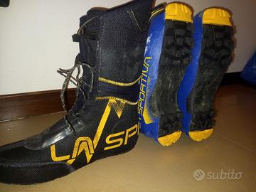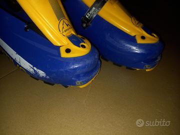 - scarponi La Sportiva Sideral 2.0 con scafo 297 mm e scarpetta 270, leggeri e asciutti, buon compromesso per salita e discesa, adatti sia ad attacchi tradizionali che attacchini, suole in ottime condizioni.