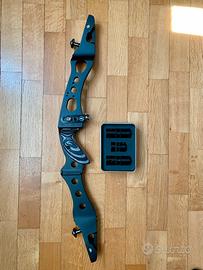 Vendo set completo di tiro con l’arco, ideale per chi cerca precisione e stabilità nel tiro con l'arco nudo (Barebow), ma versatile anche per l'olimpico. L'attrezzatura è di alta qualita e in ottime condizioni, mantenuta con cura e priva di segni strutturali. Ottima scelta per chi vuole un arco performante, reattivo e facile da settare. Il set è composto da: * Riser Kinetic Vygo, Sinistro, Nero * Flettenti Kinetic Mentum Bamboo Carbon 66” S, 26 lbs * Bottone Bicaster Cua Black * Rest Avalon Classic Magnetico LH * Corda X-Level Dyneema SK75 Plus 66” 16 Fili, Nero * Patella Exe Alu LH Small Arco Nudo * Carichino Avalon Limb-Tip * Squadretta Easton T * Frecce Disport Carbon Spine 800 Complete per Arco Mixx * Faretra Avalon Classic 2018, 3 Tubi, 2 Tasche, con Cintura LH, Nero * Estrattore Flex FlexPull 2.0, Giallo * Cavalletto Carter per Arco Ezy * Parabraccio Bicaster Asa Black * Paraseno Avalon Classic LH Medium Black * Zaino Avalon Tyro, Nero/Grigio Specifiche Tecniche: • Riser: Kinetic Vygo 25” • Materiale: Alluminio 6061-T6 lavorato CNC. • Attacco: ILF (International Limb Fitting). • Punto di forza: Progettato specificamente per il Barebow, include pesi modulari (2x 200g, 1x 100g) per un bilanciamento perfetto senza vibrazioni. • Regolazione: Allineamento flettenti e potenza (tiller) integrati. • Flettenti: Kinetic Mentum 66” - 26 lbs • Anima: Bamboo e Carbonio. • Caratteristiche: Il bamboo offre una fluidità di tiro eccezionale e una velocità di uscita superiore rispetto alle anime in legno standard. • Misura finale: Con riser da 25”, l'arco risulta un 66 pollici.