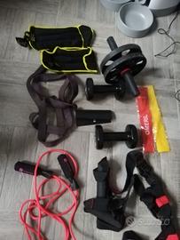 Tutto in blocco, pesi elastici, corda, tutore per ginocchia, ecc, bollate