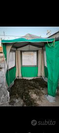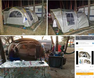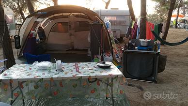 vendesi a blocco tenda come da foto utilizzata soltanto 2 volte ,in ottime condizioni ,più 4 sedie da campeggio ,cucinino come da foto,armadio guardaroba da campeggio ,cucina da campeggio ,fornello a tre fuochi ,vari teli per copertura etc. contattare soltanto se veramente interessati no perditempo.