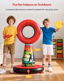 🎯 Divertimento Disc Golf Tutto-in-Uno – Basta con la ricerca infinita di accessori! Questo set completo include tutto per il divertimento immediato: 1 canestro bersaglio gonfiabile grande, 4 dischi volanti vivaci (2 colori per squadre), pompa rapida, picchetti da terra stabilizzanti e comoda borsa da trasporto. La soluzione ultima per coinvolgenti giochi da giardino che mettono in movimento tutta la famiglia.