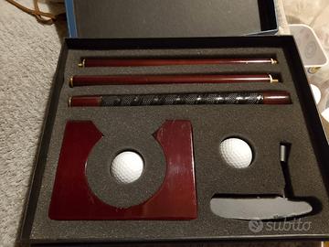 Componenti Aggiuntivi:Il set include tipicamente due palline da golf e una buca o un bersaglio per il putting, spesso con una rampa in legno come quella mostrata.