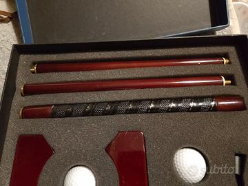 set da putting da golf portatileper l'allenamento indoor. Questi kit sono progettati per consentire ai golfisti di praticare i colpi sul green nel comfort di casa propria o in ufficio.