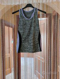 Vendo un set di 3 canottiere da donna taglia L/XL da palestra di colore rosa fluo, giallo fluo e lilla della duesse con le seguenti misure
