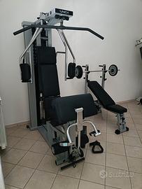 Set di 2 macchine: "Unica" 26 funzioni e panca "Pratica" con bilanciere e dischi.
