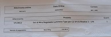 Vendo set di mira notturno regolabile modello LUMINOVA TYPE adatto per pistola marca CZ SP . 01 e CZ Shadow 2 Marca LPA.